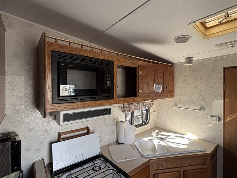 - **Sleeping Accommodations:** This model includes a cozy sleeping area that can comfortably accommodate up to four people. The convertible dinette and a fold-down bed provide flexibility for your sleeping arrangements.