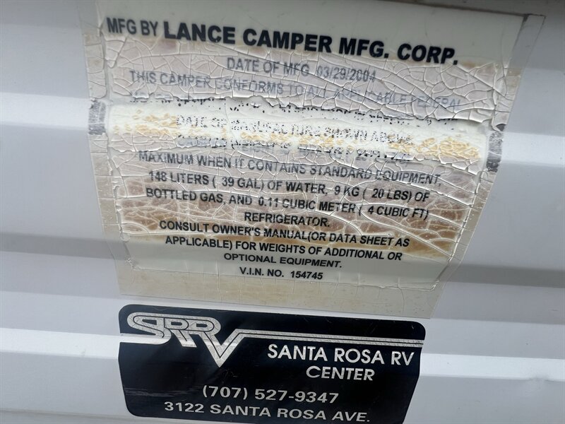 2004 Lance 835 Lancelite Truck Camper