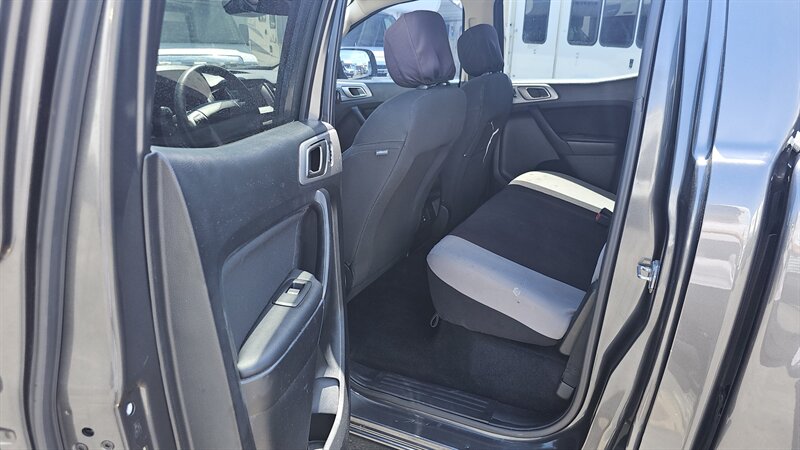 2019 Ford Ranger Sport SuperCrew in Gray with a Black interior, powered by a 2.3L EcoBoost Turbo I4 (270 hp / 310 lb-ft) and delivering an EPA-estimated 21 MPG city and 26 MPG highway. In excellent overall condition.