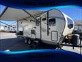 2019 Forest River MINI Lite in tan exterior with tan interior, in excellent overall condition. Factory-standard features include a lightweight laminated body with aerodynamic front cap and durable rock guard, power awning with LED lighting, exterior pass-through storage, stabilizer jacks and an exterior service center. Interior factory equipment comprises a functional galley with sink, countertop, range, microwave and refrigerator, a convertible dinette/bed layout, dedicated sleeping area or bed, and a full bathroom with shower, vanity and toilet. Climate control comes from a roof-mounted air conditioner and propane furnace; convenience and safety items include interior/exterior LED lighting, stereo with indoor/outdoor speakers and TV prep, USB/power outlets, smoke and CO detectors, LP alarm and fire extinguisher.